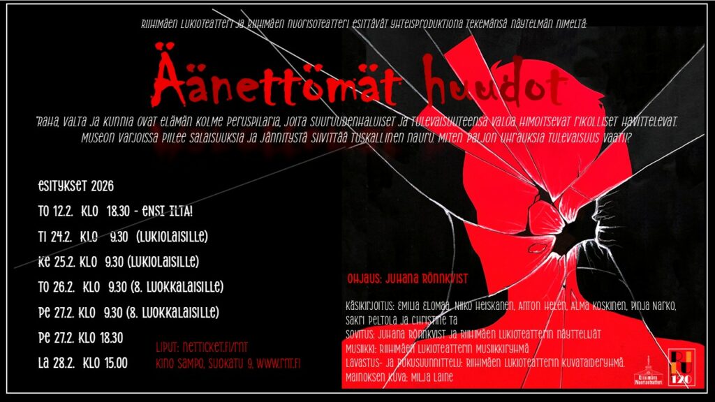 Riihimäen lukioteatteri ja Riihimäen nuorisoteatteri esittävät: Äänettömät huudot
